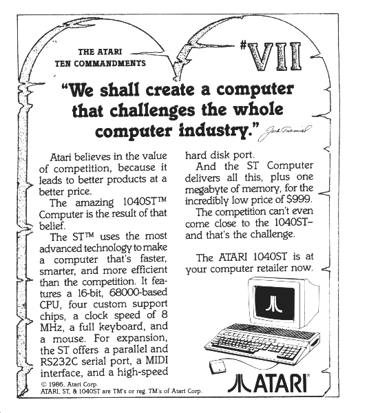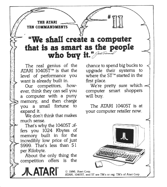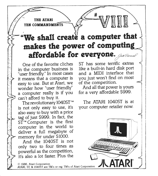 1040ST was ready for release in 1986, a small promotional packet