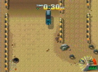Overview: The variety in the tracks is very good. You'll race against the timer or an opponent. 3, 4, and 5 lap races in any of the many race types. One cool part about the game is the Skills Tests...Whenever you finish up one country, you'll be faced with the challenge of completing one of these before you can move on to the next country. These add a great variety to the game and allow you to do something besides the usual lap race. There are a variety of power-ups scattered throughout the tracks. These will help ya get cash, stop the timer, or put some distance between yourself and that guy with the artificial intellegence chip in his head... Graphically, the game is solid. Nothing to really make ya jump back, but the graphics do shine and the artwork is really well done. The scenery is nice and varied. You might even catch a dead antilope laying there with it's guts hangin' out....lotsa detail. The cars have a nice rendered look to them....as you turn the car looks to be light sourced. Nice foreground effects such as rain, snow, sand...etc. that include a few layers of parallax in 'em. Flip up dirt and watch the snow fly around as you powerslide through and icy corner. The graphics when you're not in the game are very nice and look to have time a great deal of time spent on 'em. The graphics are in there indeed. Soundwise, it's above average. The engine sounds are a bit cheesy, but you won't mind. Your partner is constanltly shouting out directions....it doesn't bother ya 'cause his voice kinda hangs in the background....Although if ya wanna really hear him, you'll find yourself turning the music down a bit. Ahh yes, music... The music is a toss-up. While some of the tracks are well done, there are others (arizona to name one) that'll make ya wanna turn the music off or down. Other tunes (such as Corsica) are very cool and give ya the racing feel. The control is perfect! This game features some bad "A" control dynamics. The feeling ya get when racing is a very realistic one...As the scenery changes, and the conditions change, you'll get new control dynamics. In snow you'll slide around....In sand, you'll have a hard time to get going when off-road.....It is all very cool to have in the game.