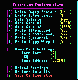 This section of the ProSystem can be used to set the emulation mode of a complex .PRO image, set the per-sector delay, and modify the disk drive controller and track status. You may move from sector to sector using the arrow keys, and exit using the [ESC]ape key.