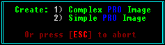 You must now choose wether to create a simple .PRO image, or a complex .PRO image. A simple .PRO image is a one pass read that produces a disk image capable of emulating SIMPLE COPY PROTECTION schemes only.