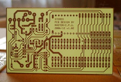![]() Fotografie osazené stereo destičky. (Pohled z horní strany - strana součástek.) |