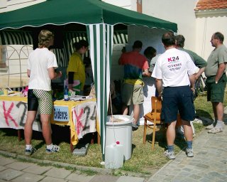 14:44 - Hotovo! V nohách mám 340,8 km, to mi pro letošní K24ku úplně stačí. Odebral jsem se za Lídou do oratoře, a protože Honza ještě jezdil, využil jsem volnou chvíli tím nejlepším způsobem co mě napadl, to jest spánkem. Když jsem se pak chvilku před čtvrtou hodinou vzbudil, Honza už tu byl taky - svým výkonem 312,4 km mě vážně příjemně překvapil - bál jsem se že to zabalí mnohem dřív, ale je holt dost dobrej! :-) Nastal čas začít zvolna balit. Je to škoda, ale musíme odjet ještě před slavnostním vyhlášením výsledků. Nastrojili jsme kola zpátky do držáků na střechu, narychlo se rozloučili s Jurisem a pádili k domovu.