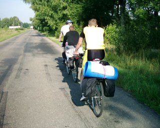 ![]() Naše karavana. Toto je jediná fotka, kterou jsem zkoušel fotit výjimečně přímo z kola za jízdy. |