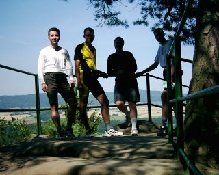Odpoledne o půl třetí jsme dojeli do CHKO Český ráj. Kola parkujeme u boudy, ve které dvě mladé krásné slečny prodávají vstupenky do Prachovských skal. Tak si je kupujeme (ty vstupenky, ne ty slečny), a prosíme je (ty slečny, ne ty vstupenky), zda by mohly sem tam mrknout na naše kola kdyby se třeba někdo snažil přeřezat naše čtyři zámky, kterýma jsou uzamčena. A hurá na pěší túru po Prachovských skalách. Po prvních pár schodech nás Bob upozorňuje na nepříjemnou bolest v koleně, ale hrdinně s ní bojuje. Honza mě každých 150 metrů obtěžuje se svou podrobnou mapou a chce po mně vědět, kudy chceme jít. Když mu stále říkám, že to tu neznám, že nevím a že je mi to jedno, je zhnusen a vodí nás po krásných místech Prachovských skal dle vlastního uvážení, za což jsem mu vděčen a jménem celé výpravy mu dodatečně děkuji.