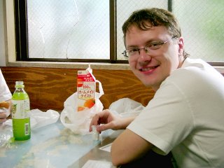 Budíček byl opět v 8 hodin. Po ranní údržbě jsme se vydali na nedalekou poštu, kde jsme chtěli koupit pohledy, ale ty tam neprodávají. Na zpáteční cestě se aspoň stavujeme v pekárně, kde si pořizujeme snídani. Já si vzal bagetu s něčím bílým osmaženým, uvnitř čehož bylo něco dalšího zabaleného v zelené řase (160JPY), druhá bageta obsahovala kapsičky z vajíčkové placky, v nichž bylo zapečené mleté maso (180JPY). Snědli jsme to v hotelu a vyrazili do města.