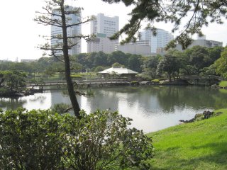 ![]() Zahrada Hama-rikyu obklopená mrakodrapy. |