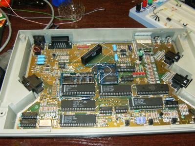 As You can see - everything fit nicely into XEGS board, this machine has 1MB of extended ram, and 4 bank system selector