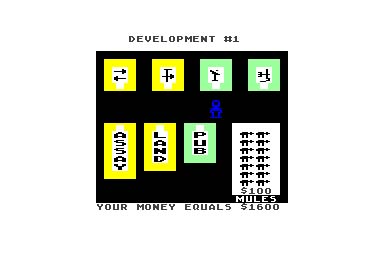 Another change in the Standard game: the M.U.L.E. will run away when you try to install him on your land, unless your character is directly over the house when you push your joystick button. Pushing the joystick button anyplace other than your plot will also cause the M.U.L.E. to run away.