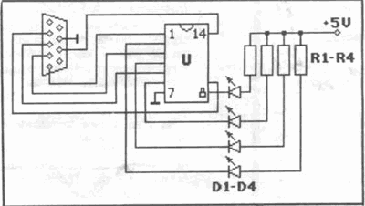 Zachęcony licznymi publikacjami na temat wykorzystania komputerów do sterowania różnych urządzeń postanowiłem wykonać odpowiedni interfejs do Atari XL/XE. Korzystając ze wskazówek zawartych w artykule o niekonwencjonalnym wykorzystaniu portów joysticków ("Bajtek" 4/88) zbudowałem sterownik z układem 74145. Niestety włączane kanały sterujące były zależne i jednocześnie mógł być włączony tylko jeden z nich. To mnie nie zadowalało. Zwróciłem uwagę na układ 7407, lecz nigdzie nie mogłem go zdobyć. Zastępczo użyłem więc 7406, który ma tą wadę, że sterownik można włączać dopiero po uruchomieniu programu sterującego Wcześniejsze włączenie sterownika powoduje bowiem stan aktywny wszystkich kanałów sterowania. Układ 7407 zawiera wzmacniacze b uforowe, a 7406 inwertery buforowe i stąd biorą się te niedogodności. Schemat układu sterującego znajduje się na rysunku 1.