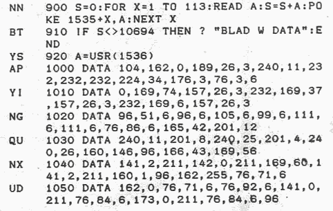 OPEN otwiera wybrany kana ł IOCB, przy czym możliwe iest użycie następujących parametrów: OPEN #n,8,0,"J:" - otwiera kana ł n do zapisu;OPEN #n,12,x,"J:" - otwiera kana Instrukcja OPEN #1,12,15,"J:" otwiera do zapisu port joysticka 1. Poprzez wpisywanie instrukcj ą PUT wartości z zakresu od 0 do 15 włączamy poszczególne kanały sterowania. Pierwszemu kanałowi odpowiada wartość 1, drugiemu 2, trzeciemu 4 i czwartemu 8. Na przykład w celu włączenia drugiego i trzeciego kanału (i wyłączenia pozostałych) należy podać wartość 2+4=6. Napisanie w Basicu prostego programu dostosowanego do potrzeb użytkownika nie powinno nastręczać trudności.Marek RUTA Moje Atari 6/91 Str. 17 Wykaz elementów:us - 7406, 7407, 74016, 74017 T - BC107, BC108, BC147, BC148 D5 - BYP150, BYP401, BAP795 C - 470 nF lub wiecej na 400 V R5 - 1k (dobrać do przekaźnika) R6 - RPP130, RPP120 lub inny |