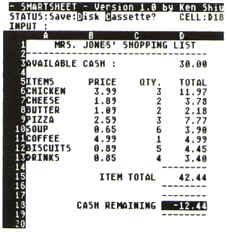 buffers, Smartsheet will only work on a 32K cassette or 48K disk