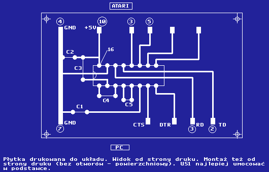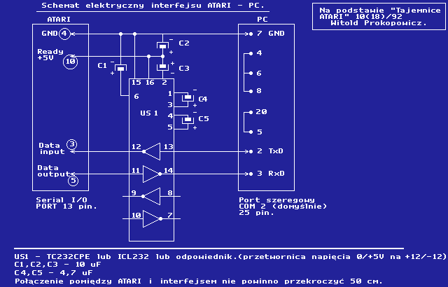 złączu szeregowym PC i standardowym złączu od stacji dysków Atari.