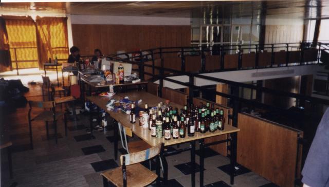 Some empty beers, mostly drained by the French and German dudes (which