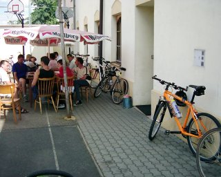Jedenáct kol mám za sebou, a tím i vyrovnán svůj loňský výkon. Za odměnu si jdu ke kuchyňce vyprosit klobásku. Po uvaření mi ji donesli až pod nos, tomu říkám úžasná obsluha. Přitom já bych si tam klidně došel sám, na to ještě sílu mám - i když na druhou stranu, proč tak zbytečně hazardovat, že?! ;-) Promačkával jsem tachometr, abych se pokochal celkovou kilometráží, a přitom omylem denní údaje vynuloval - no aspoň mi bylo jasné, že už jsem pořádně utahaný a blbost vítězí nad rozumným uvažováním. Tak toho využívám a vydávám se s Radkem a Edou do bonusového dvanáctého kolečka.