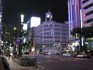 ![]() Čtvrť Ginza, obchodní dům Wako s věží s hodinami. |
