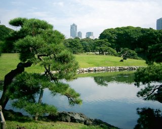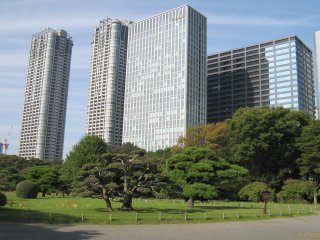 ![]() Zahrada Hama-rikyu obklopená mrakodrapy. |