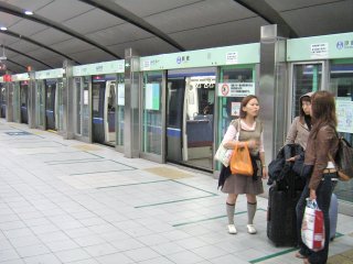 ![]() Konečná stanice: Shimbashi. (Na zastávkách je druhá vrstva dveří bránících pádu do kolejiště.) |