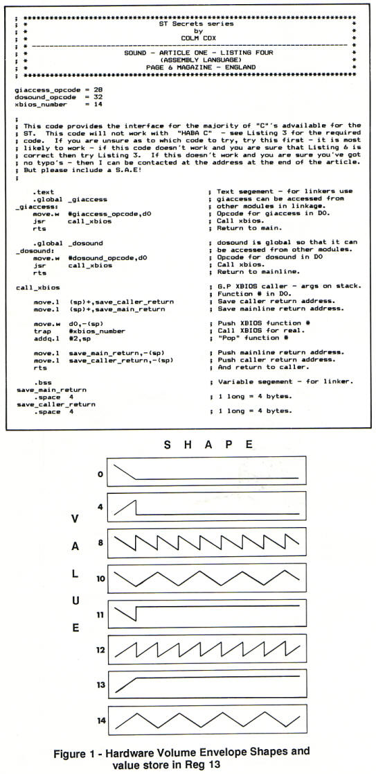 the PSG. Atari thoughtfully provided 2 routines in the XBIOS (eXtended